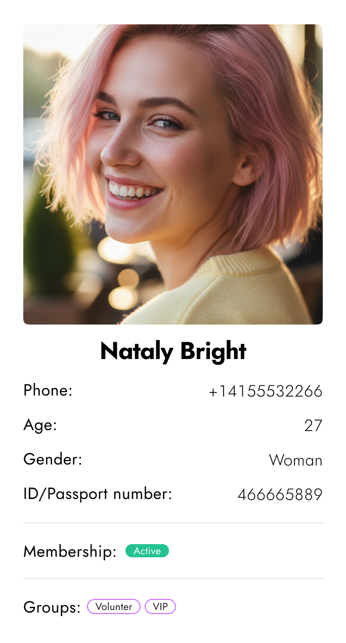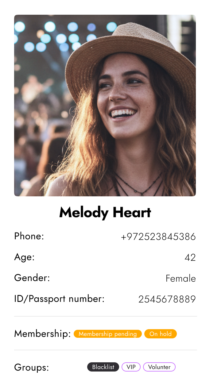 Personal details, history, groups, and membership status. All in one profile.